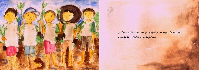 Ini adalah proyek cat air pertama saya. Lumayanlah hasilnya... saya ingat pesan penulis buku bergambar favorit saya, Shaun Tan. Katanya jangan terjebak menjiplak diri sendiri, cobalah hal-hal yang baru. Jadi proyek ini adalah sebuah pelarian dari rutinitas berkrayon saya..